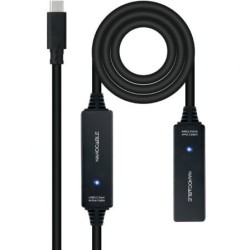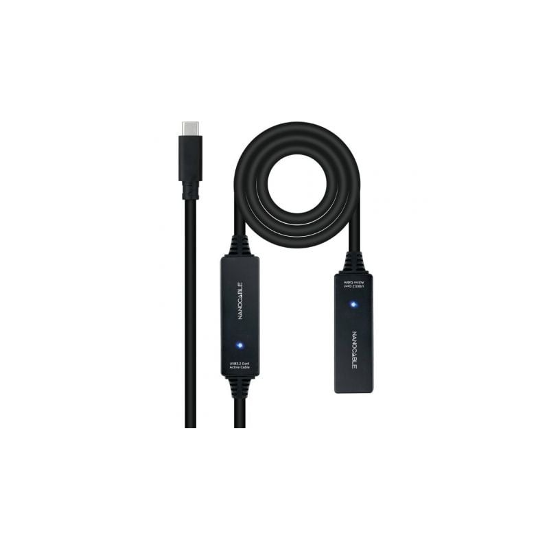 Cable Alargador USB Tipo-C 3.2 con Amplificador Nanocable 10.01.1312/ USB Tipo-C Macho - USB Tipo-C Hembra/ 10m/ Negro