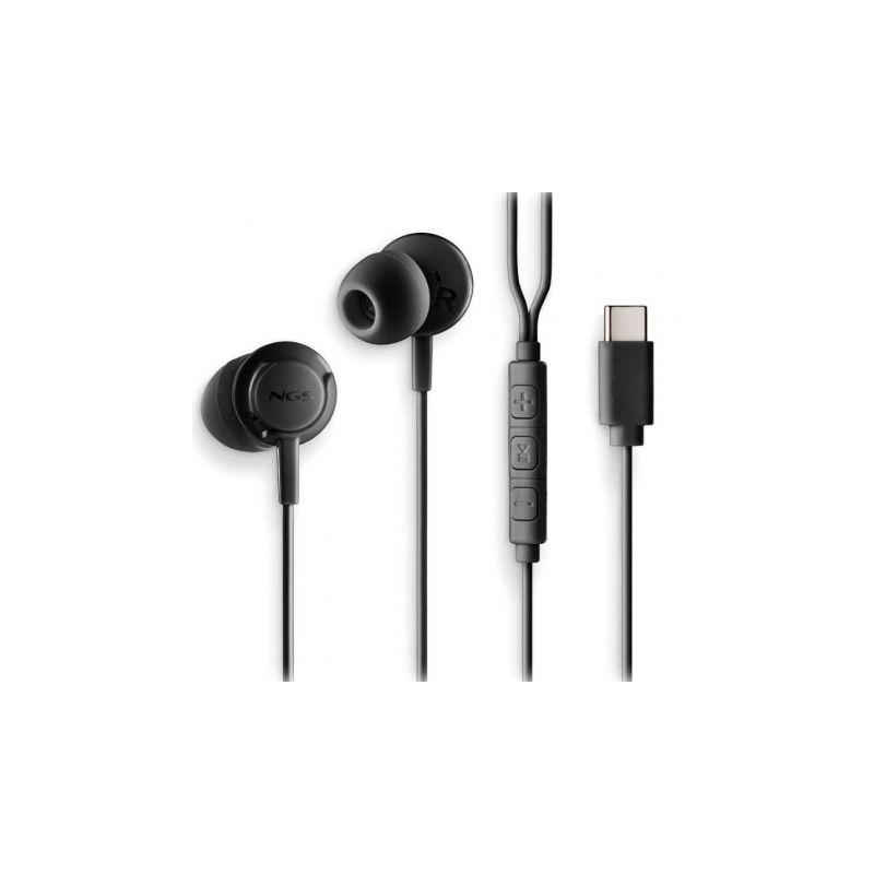 Auriculares Intrauditivos NGS Cross Step/ con Micrófono/ USB Tipo-C/ Negros