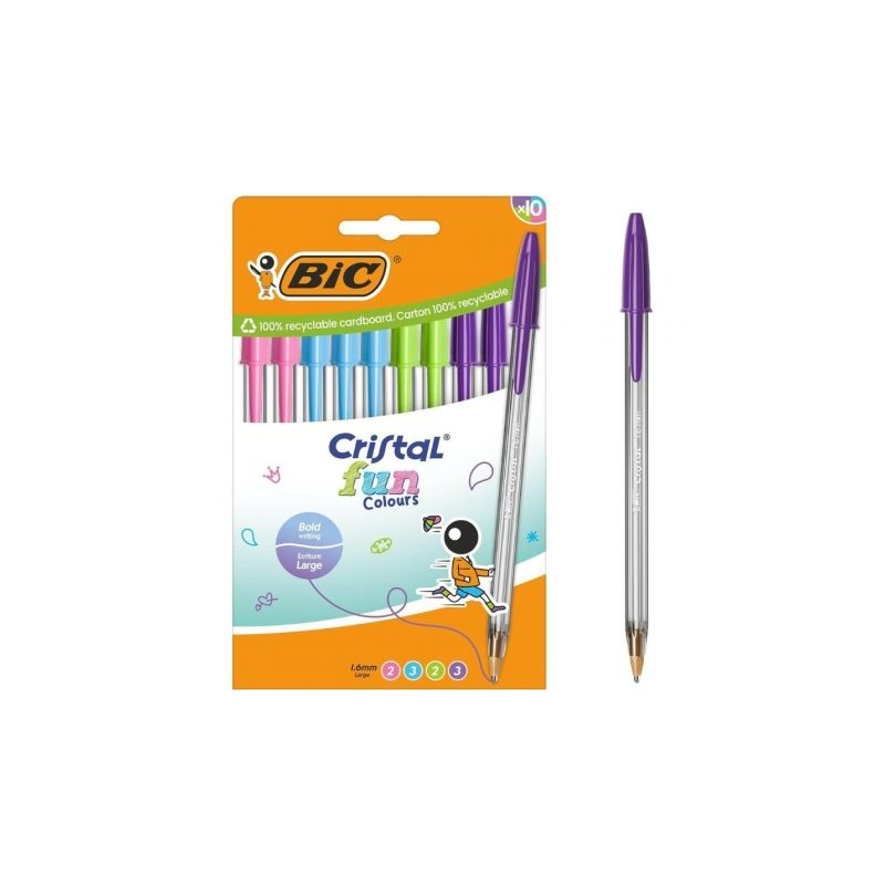 - BIC Cristal Fun Colores viene en una gama de modernos colores; un cóctel de colores para alegrar tu cuaderno.