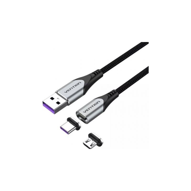 Cable USB 2.0 Vention CQNHD/ USB Macho/ MicroUSB Macho - USB Tipo-C Macho/ 480Mbps/ 50cm/ Gris