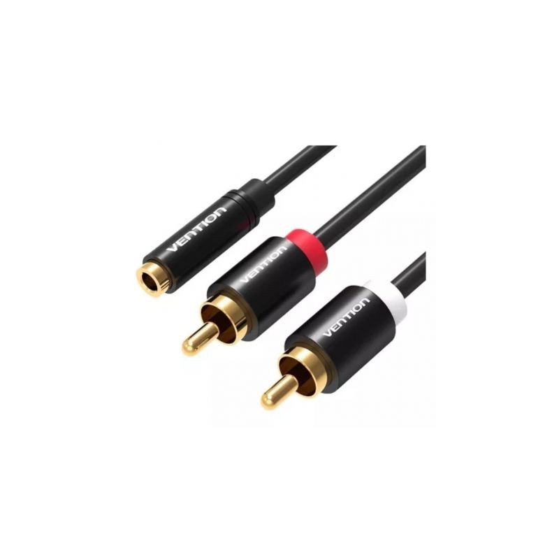 Cable Estéreo Vention VAB-R01-B200/ Jack 3.5 Hembra - 2x RCA Macho/ 2m/ Negro