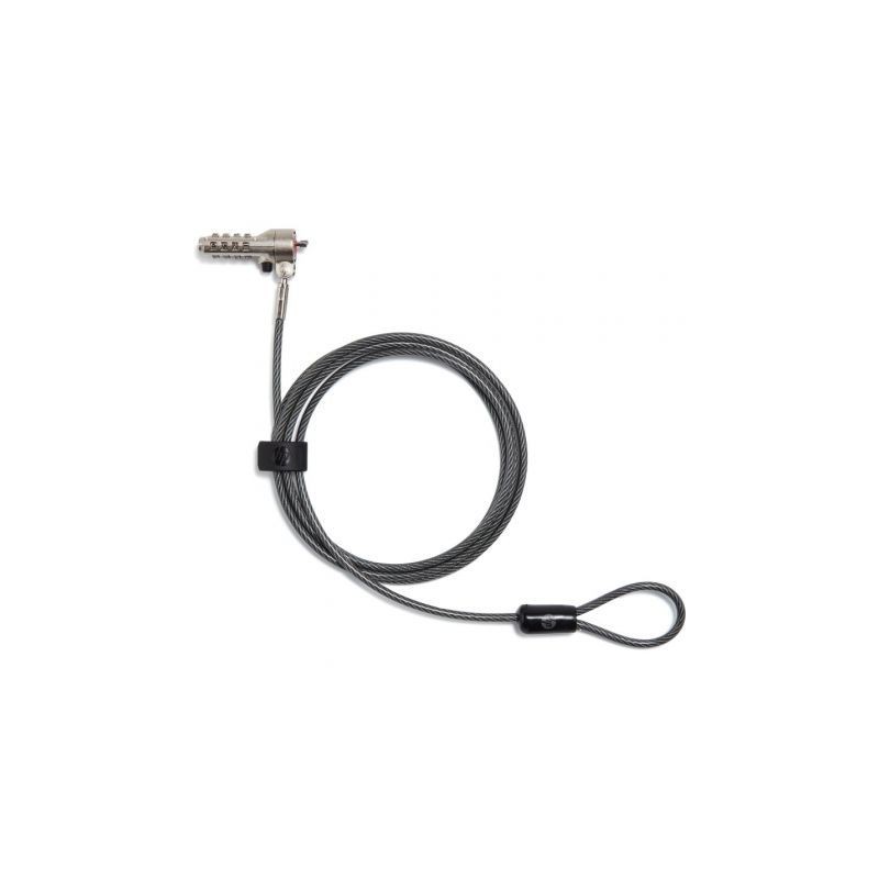 Rodea cualquier objeto fijo con el cable de acero galvanizado, recubierto con vinilo de 1,83 m (6 pies), engancha el portátil y bloquéalo con el mecanismo de presión sin llave y tu combinación personalizada de cuatro dígitos.