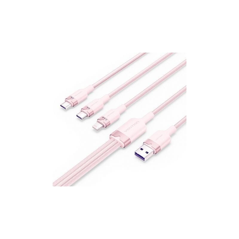 Cable USB 2.0 Lightning Vention CTRPG/ USB Macho/ USB Tipo-C Macho - MicroUSB Macho - Lightning Macho/ 1.5m/ Rosa