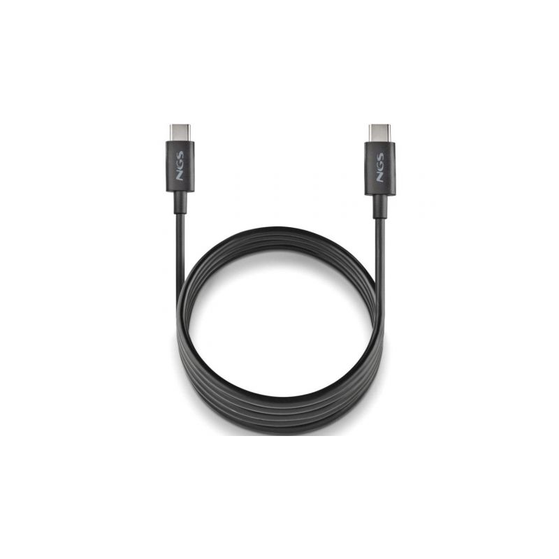 Cable USB 2.0 Tipo-C NGS ZYRO 60W-1/ USB Tipo-C Macho - USB Tipo-C Macho/ Hasta 60W/ 480Mbps/ 1m/ Negro