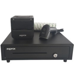 Pack para TPV Approx appPOSPACK4180-2D/ Cajón Portamonedas + Impresora Térmica de Tickets + Lector de Códigos + Rollos Térmicos