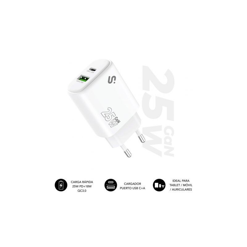 Cargador SUBBLIM GaN 25W USB-C + USB-A