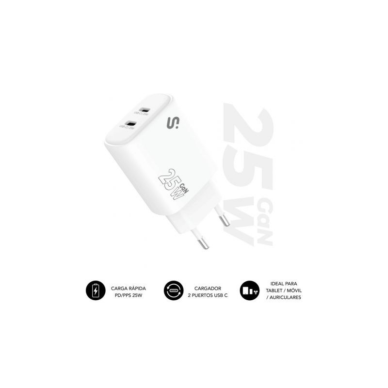 Cargador de Pared GaN Subblim 25W Charger USB C+C/ 2xUSB Tipo-C/ 25W