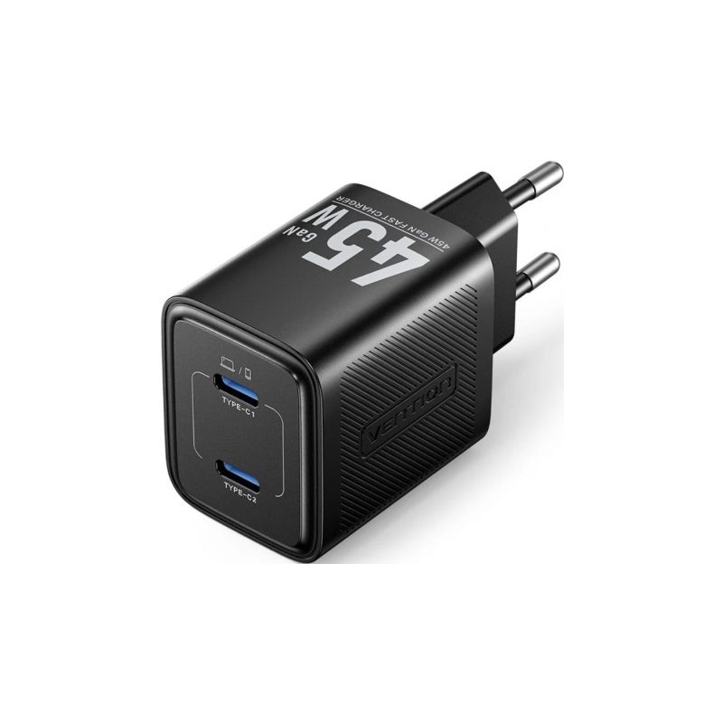 Cargador de Pared GaN Vention FEFB0-EU/ 2xUSB Tipo-C/ 45W