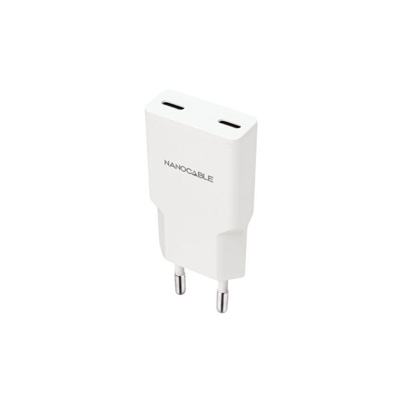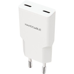 Cargador de Pared Nanocable 10.10.2026/ 2xUSB Tipo-C/ 25W/ Blanco