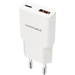 Cargador de Pared Nanocable 10.10.2028/ 1xUSB Tipo-C/ 1xUSB Macho/ 30W/ Blanco