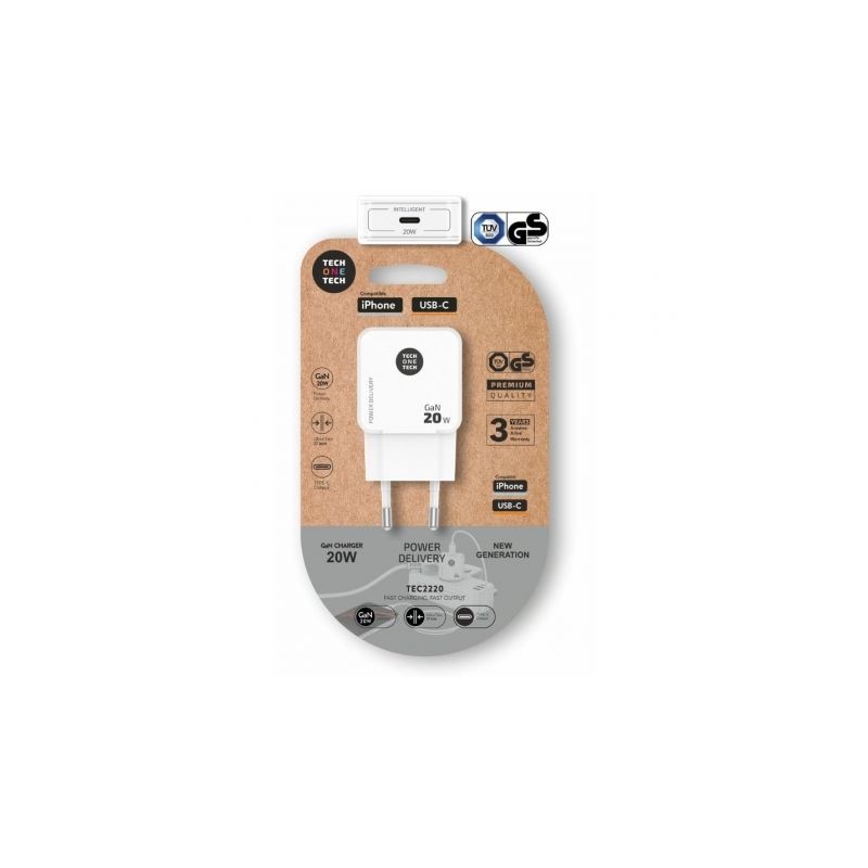 Cargador de Pared GaN Tech One Tech GaN TEC2220/ 1xUSB Tipo-C/ 20W/ Blanco