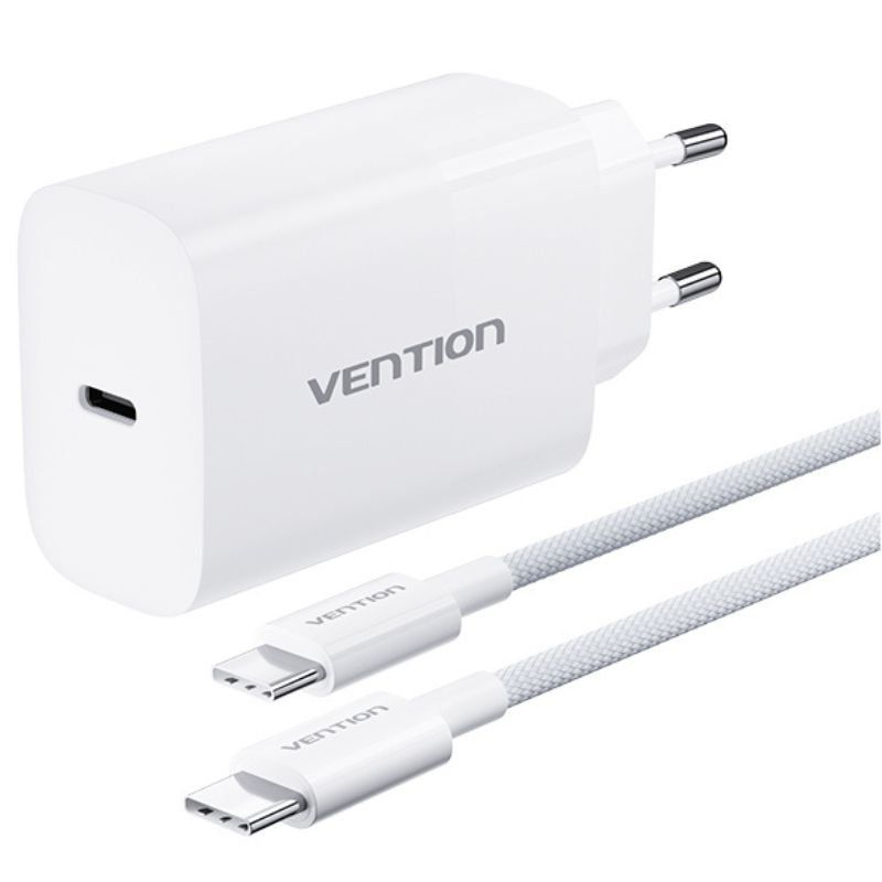 Cargador de Pared GaN Vention G14W0-EU/ 1xUSB Tipo-C + Cable USB Tipo-C/ 1xUSB/ 65W