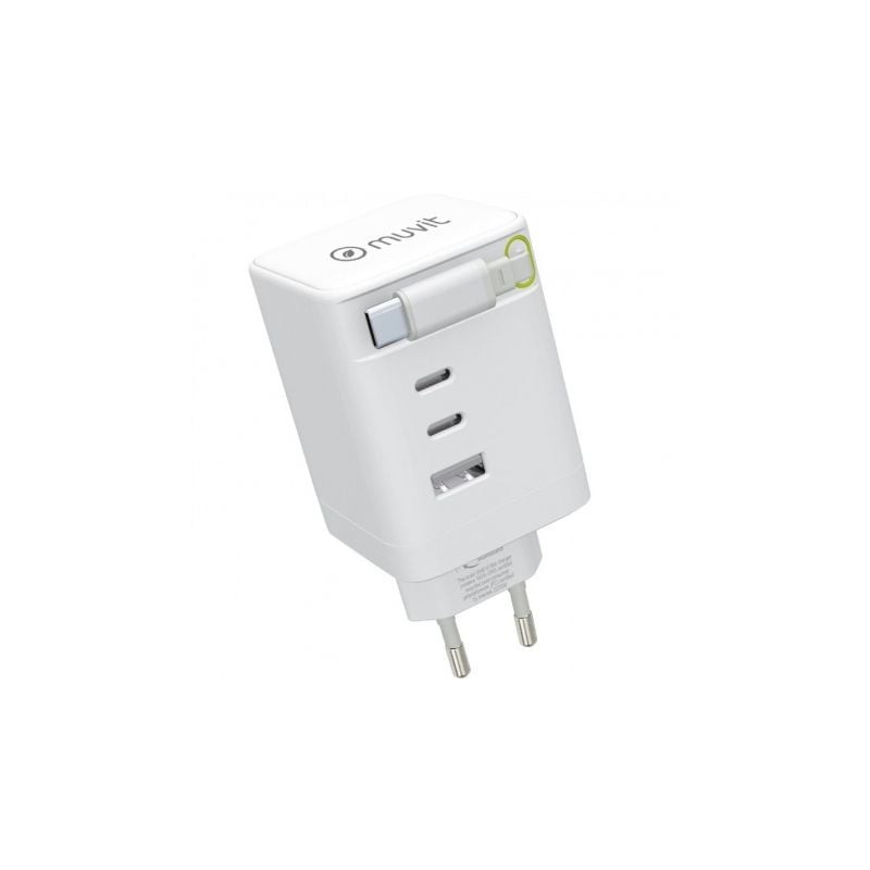 muvit for change cargador de pared Retráctil Tipo C PD 100W,2 USB-C y 1 USB blanco