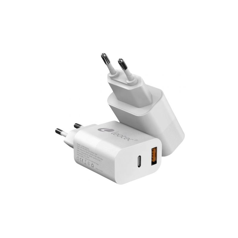 Cargador de Pared Leotec LECSPH20W2W2/ 1xUSB Tipo-C/ 1xUSB/ 20W