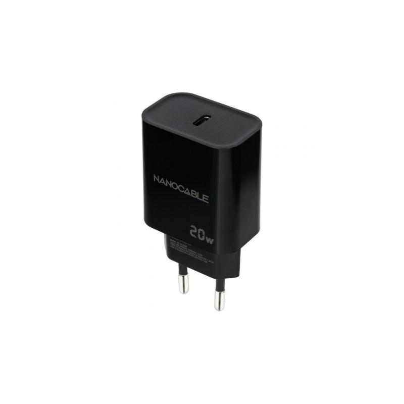 Cargador de Pared Nanocable 10.10.2006/ 1xUSB Tipo-C/ 20W/ Negro