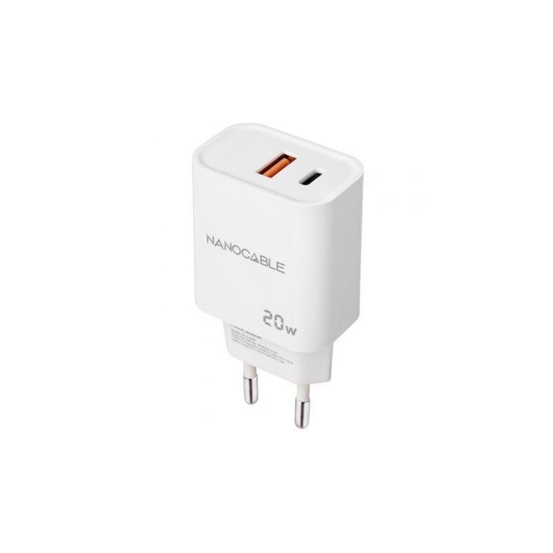 Cargador de Pared Nanocable 10.10.2007/ 1xUSB/ 1xUSB Tipo-C/ 20W/ Blanco