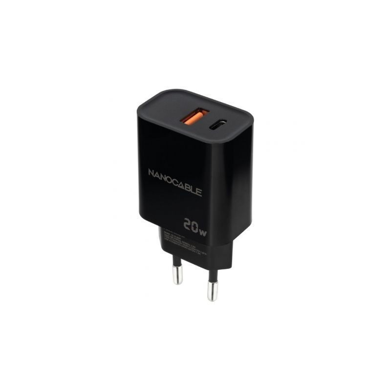 Cargador de Pared Nanocable 10.10.2008/ 1xUSB/ 1xUSB Tipo-C/ 20W/ Negro