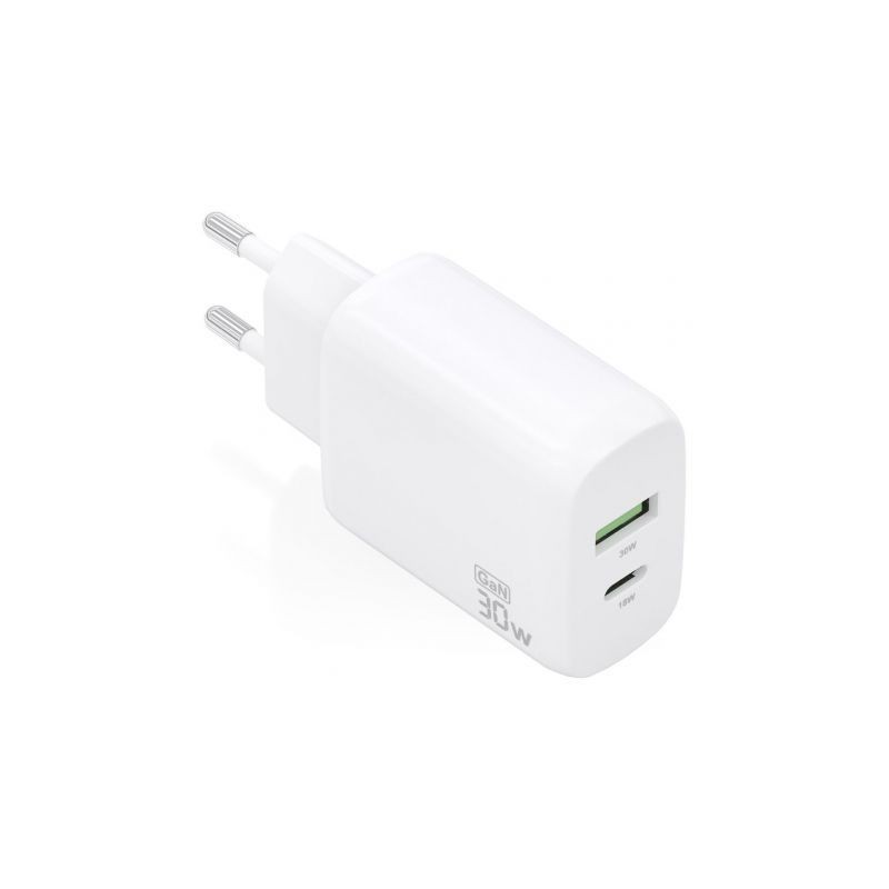 AISENS - CARGADOR GaN 30W, 1xUSB-C PD3.0 QC4.0, 1xUSB-A QC3.0, BLANCO