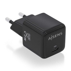 Cargador de Pared GaN Aisens ASCH-25W1P013-BK/ 1xUSB Tipo-C/ 25W