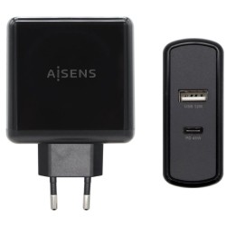 Cargador de Pared Aisens ASCH-2PD45A-BK/ 1xUSB Tipo-C/ 1x USB/ 57W