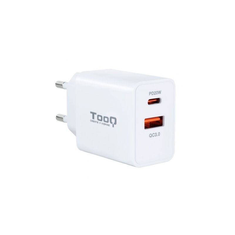 Cargador de Pared TooQ TQWC-2SC04WT/ 1xUSB Tipo-C/ 1xUSB/ 20W