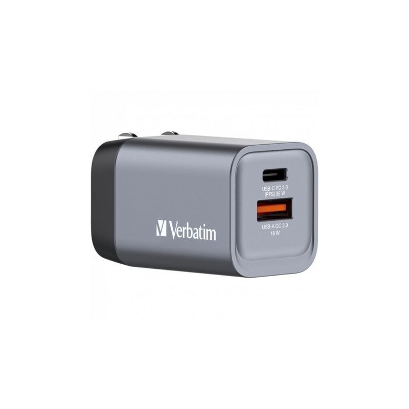 Cargador de Pared Universal GaN para Viaje Verbatim GNC-35/ 1xUSB Tipo-C/ 1xUSB/ 35W