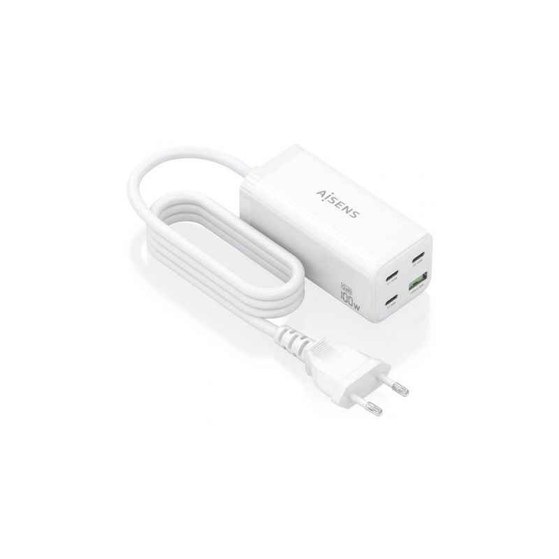 Cargador Sobremesa GaN Aisens ASCH-100W4P053-W/ 3xUSB Tipo-C/ 1xUSB/ 100W