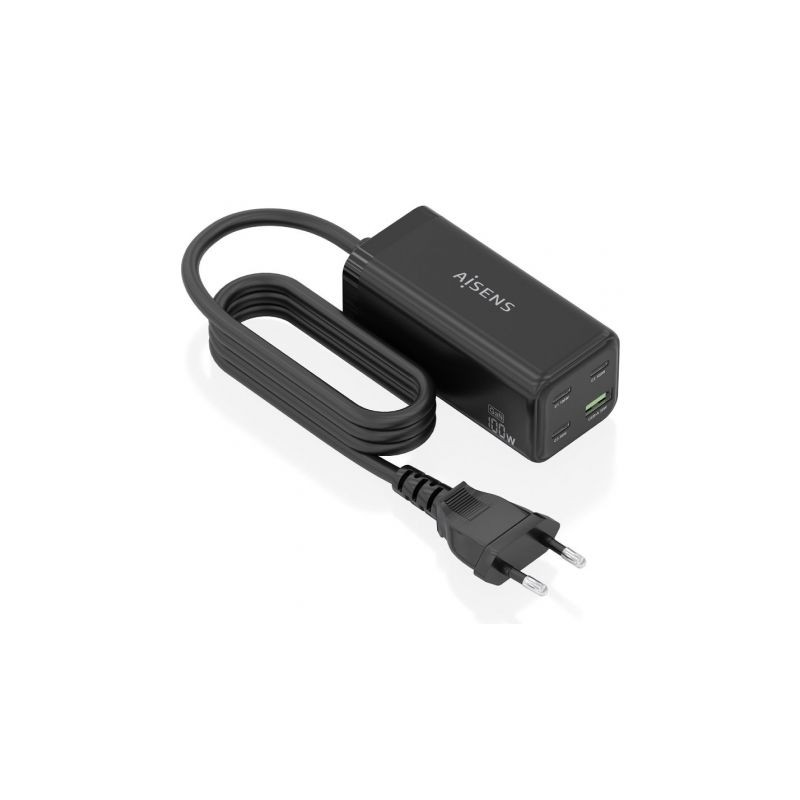 Cargador Sobremesa GaN Aisens ASCH-100W4P054-BK/ 3xUSB Tipo-C/ 1xUSB/ 100W