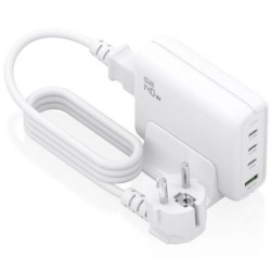Cargador de sobremesa GaN USB-C PD3.1 de 140W. Carga rápidamente portátiles, móviles, tablets, cámaras u otros dispositivos. Su diseño de sobremesa ofrece un acceso cómodo y rápido a los puertos USB.