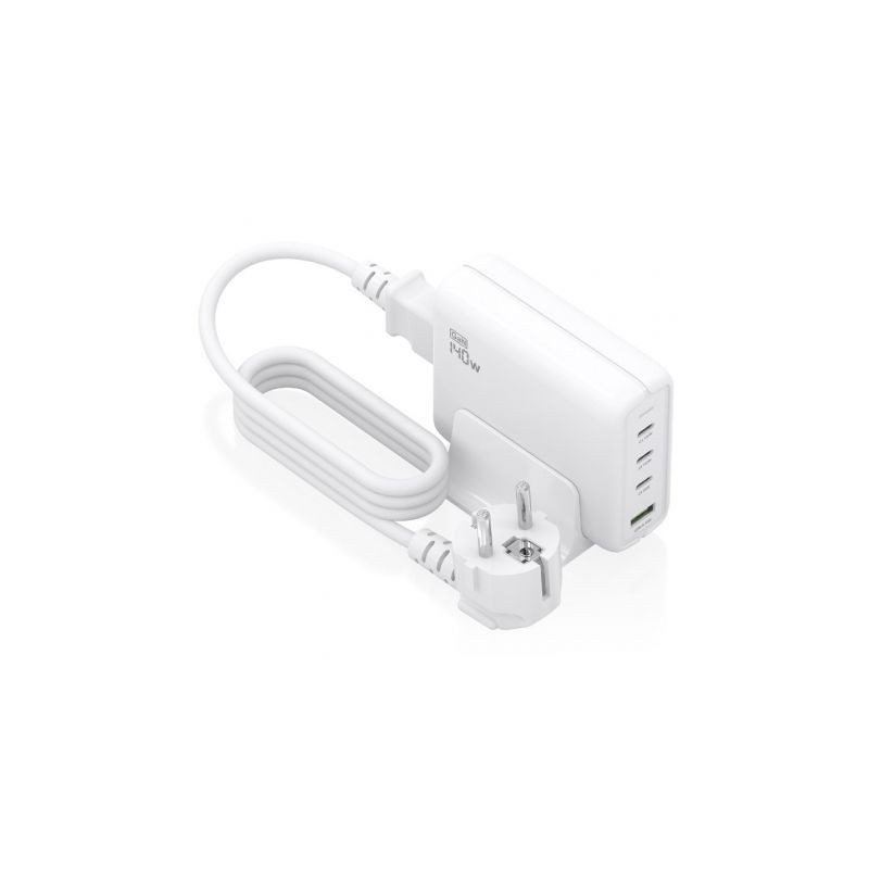 AISENS - CARGADOR SOBREMESA GaN 140W, 3xUSB-C PD3.1 QC4.0 QC5.0, 1xUSB-A QC3.0, BLANCO