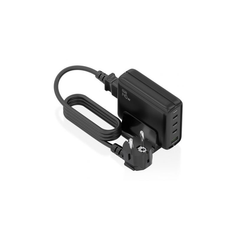 - Cargador de sobremesa GaN USB-C PD3.1 de 140W. Carga rápidamente portátiles, móviles, tablets, cámaras u otros dispositivos. Su diseño de sobremesa ofrece un acceso cómodo y rápido a los puertos USB.