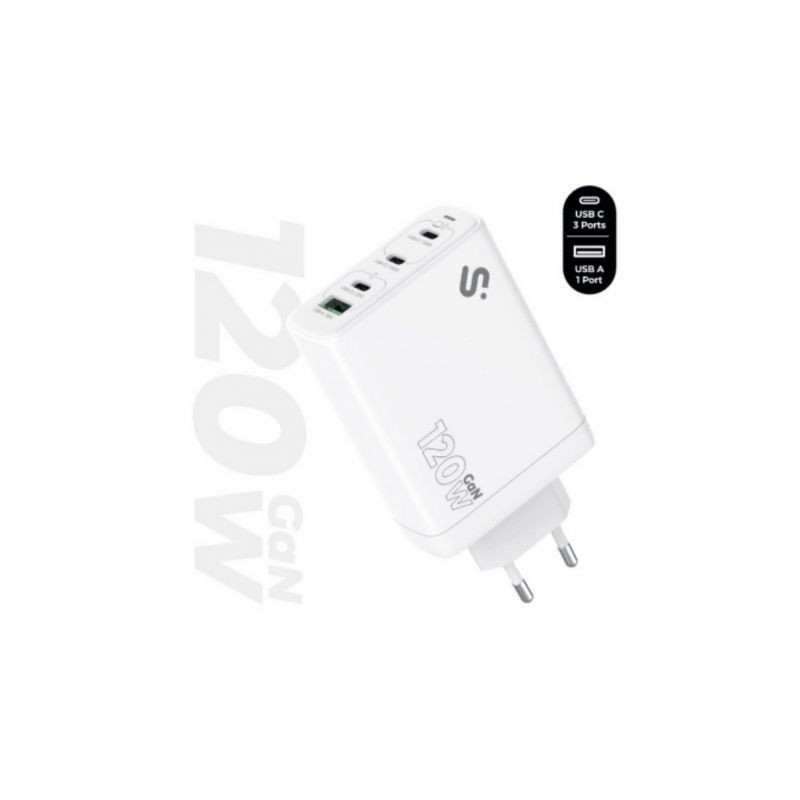 Cargador de Pared GaN Subblim 120W Charger USB C+C+C+A/ 3xUSB Tipo-C/ 1xUSB/ 120W
