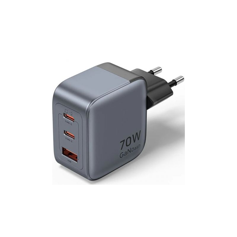 - Nombre: Cargador GaN USB de 3 puertos (C+C+A) (70W/70W/22,5W) enchufe EU gris