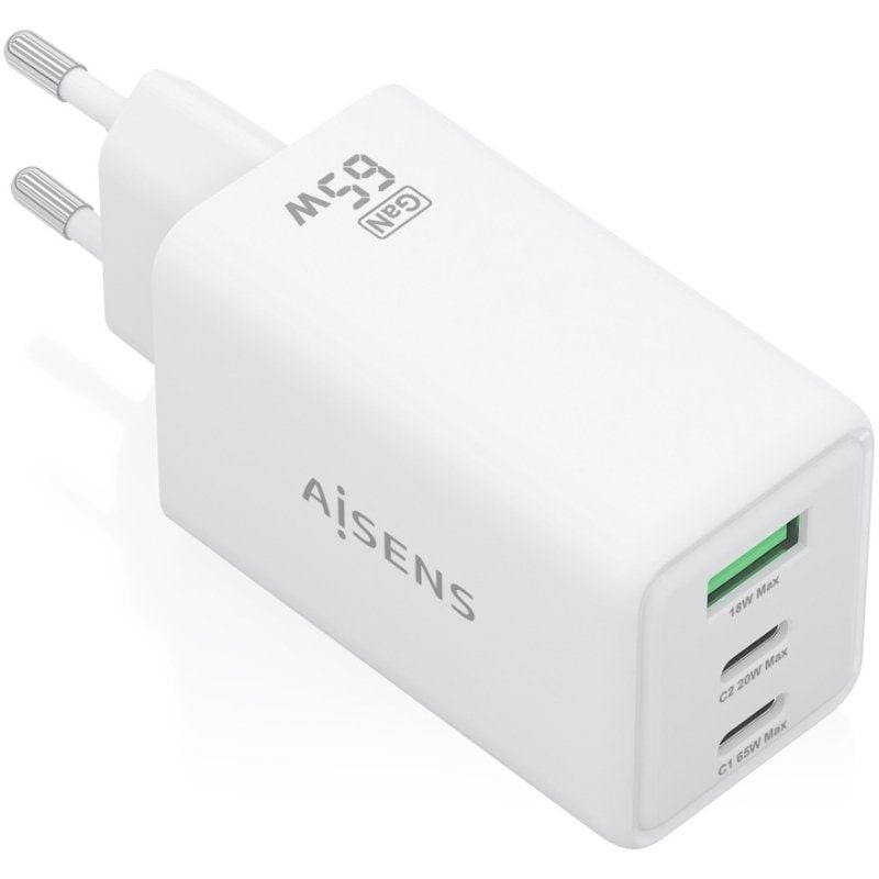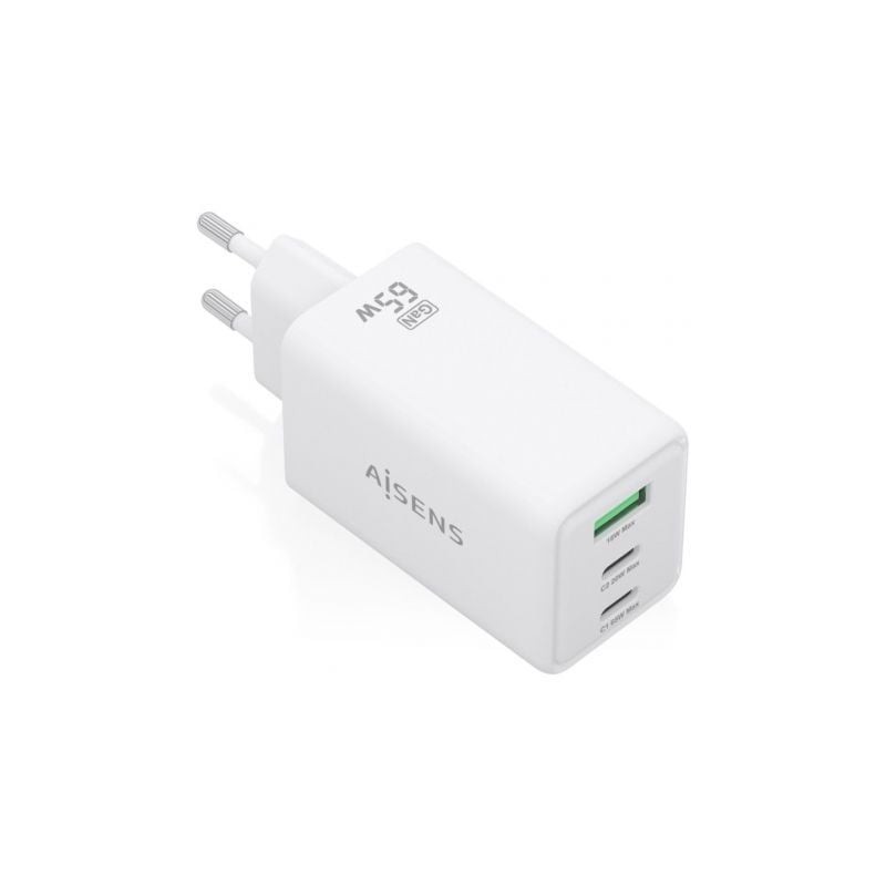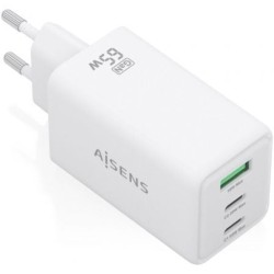 Cargador de Pared GaN Aisens ASCH-65W3P072-W/ 2xUSB Tipo-C/ 1xUSB/ 65W/ Blanco