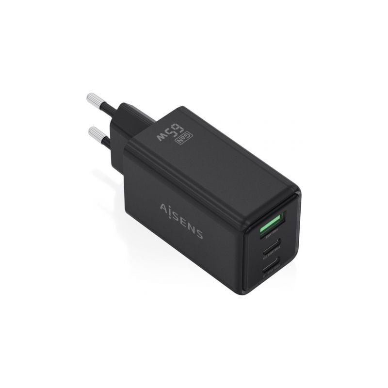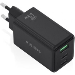 Cargador de Pared GaN Aisens ASCH-65W3P073-BK/ 2xUSB Tipo-C/ 1xUSB/ 65W/ Negro