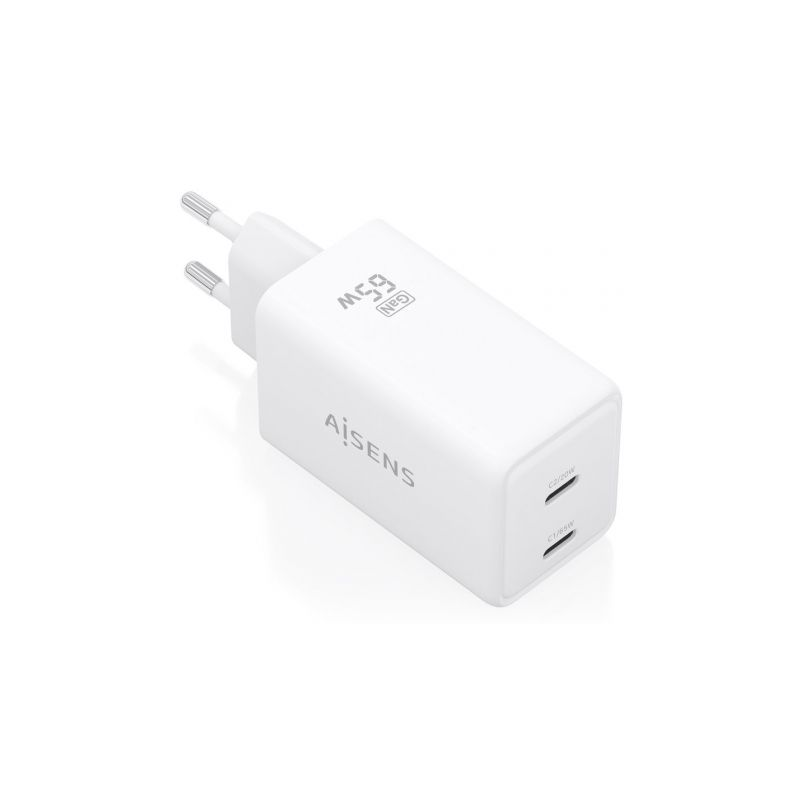 Cargador de Pared GaN Aisens ASCH-65W2P078-W/ 2xUSB Tipo-C/ 65W/ Blanco