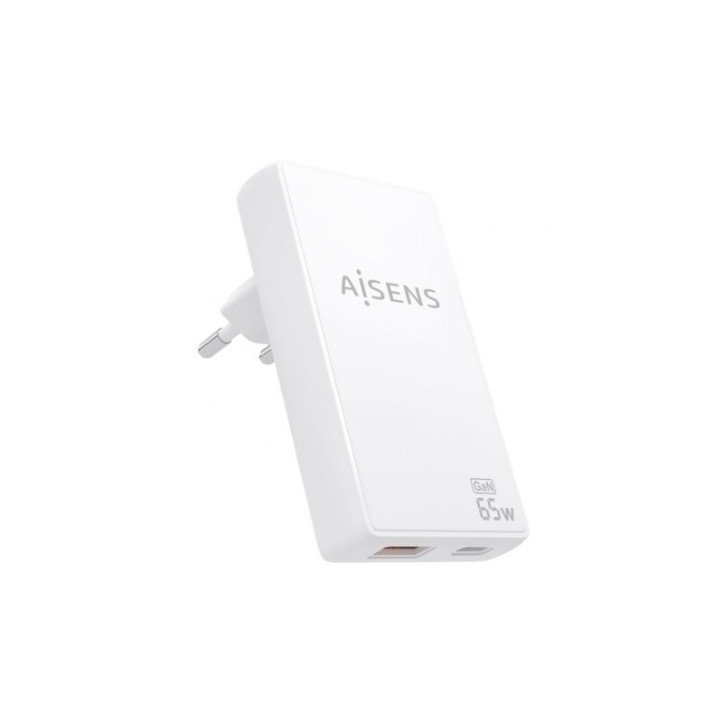 Cargador de Pared GaN Aisens ASCH-65W2P076-W/ 1xUSB Tipo-C/ 1xUSB/ 65W/ Blanco