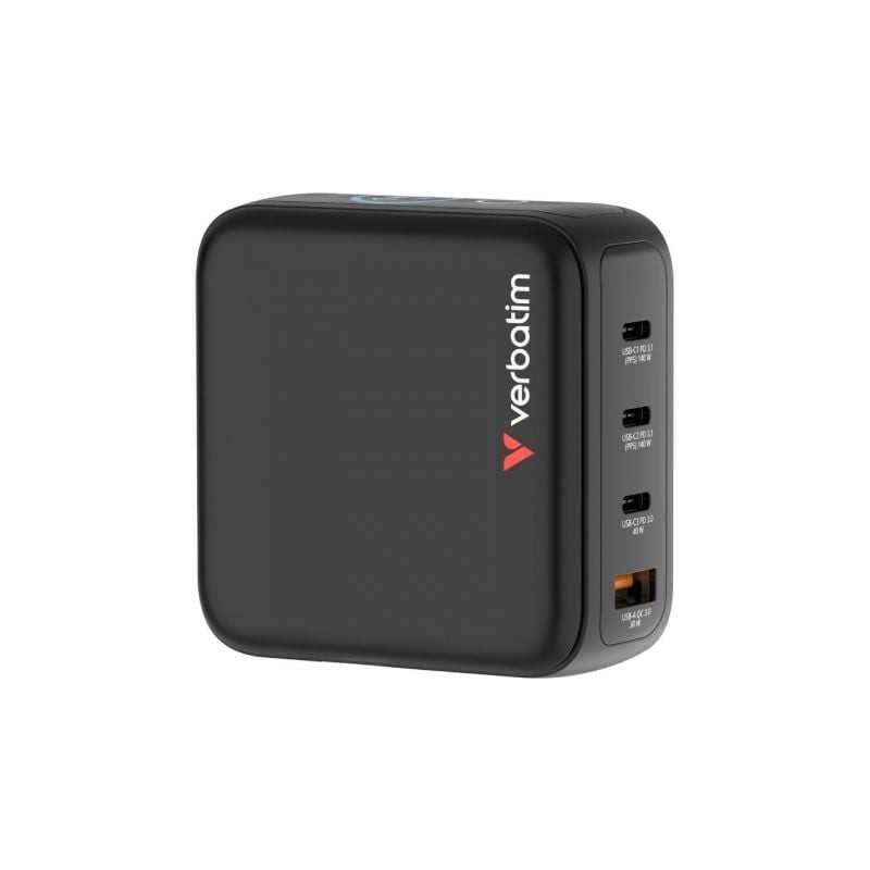 Mini cargador GaN Verbatim de 140 W con pantalla