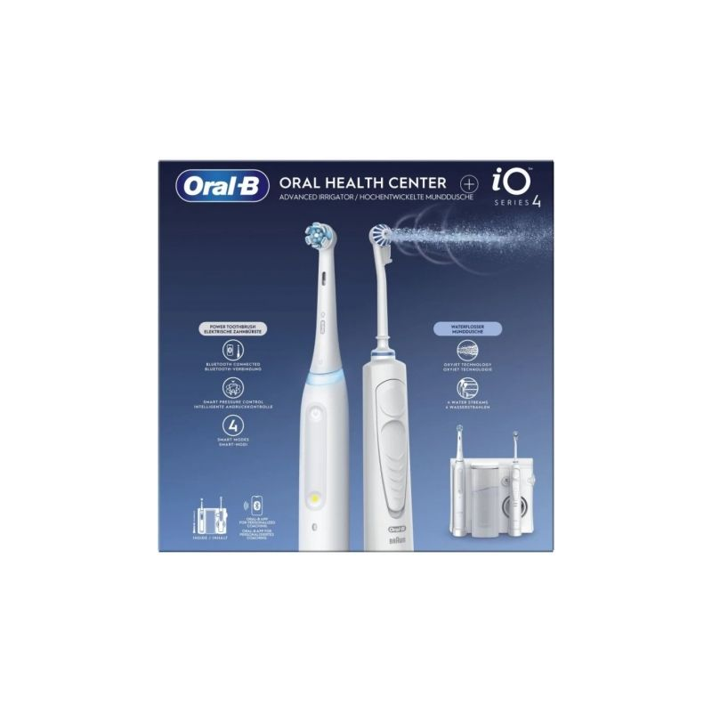 Gestión precisa y cómoda. Con su selector de 4 tipos de chorros, este irrigador agiliza y especializa el tratamiento de zonas interdentales, implantes y ortodoncia, ofreciendo una sensación de higiene profesional en cada uso. El mango iO4 y el cepillo de dientes eléctrico incorporan tecnología 3D que oscila, rota y pulsa, eliminando hasta un 100% más de placa comparado con los cepillos convencionales.