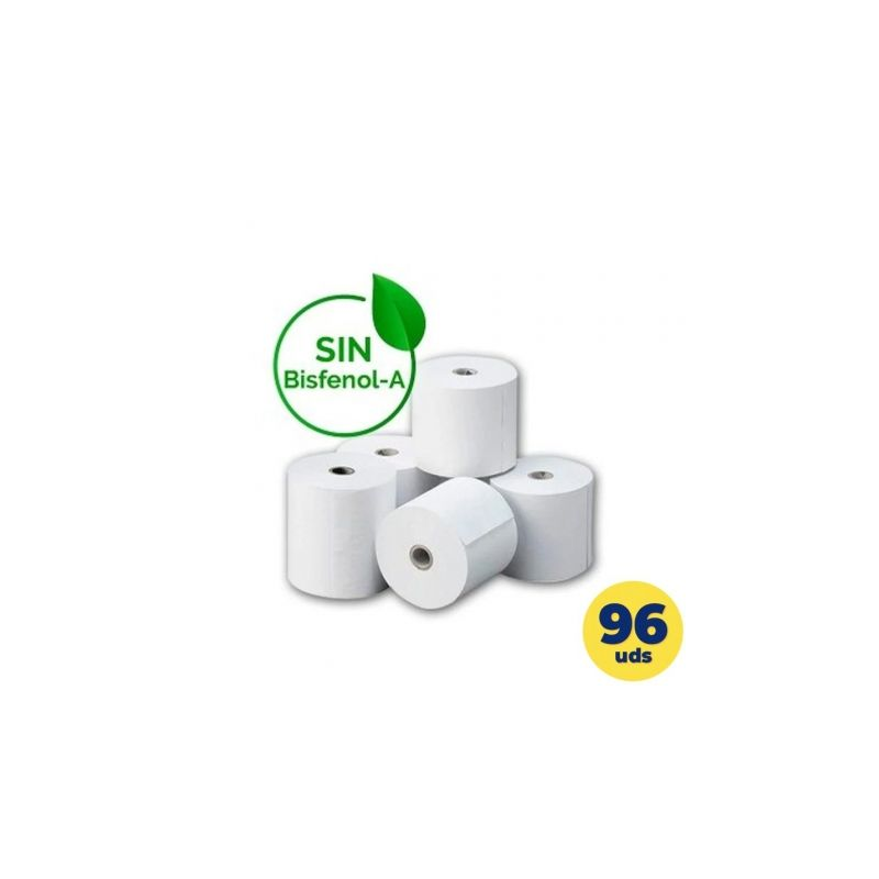 Caja de 96 rollos papel térmico BPA free (libre de bisfenol A) 80 x 55mm.