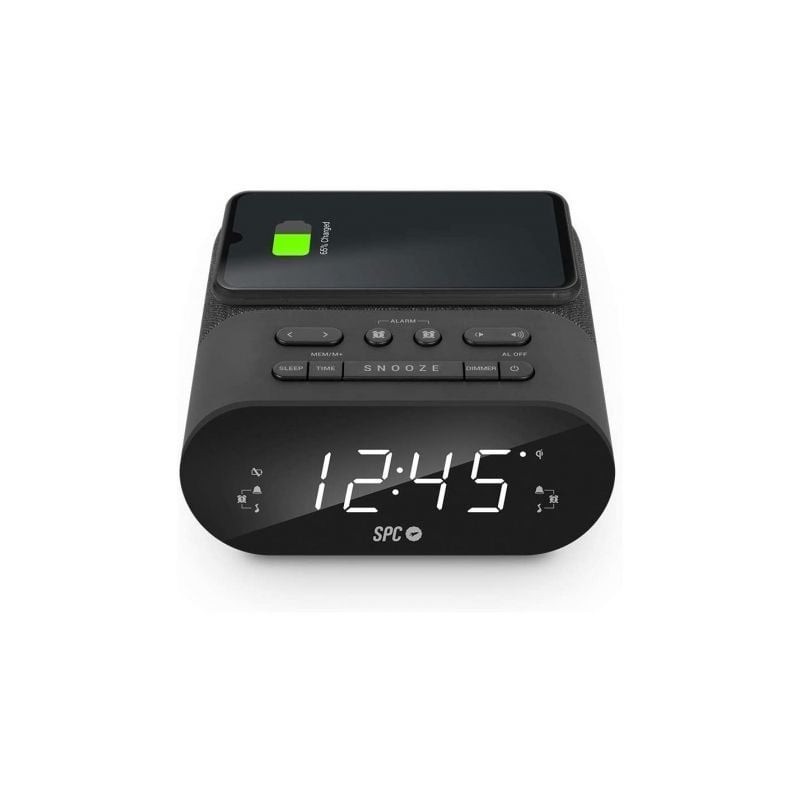 Despertador SPC Frodi QI/ Radio FM/ Base de carga Inalámbrica