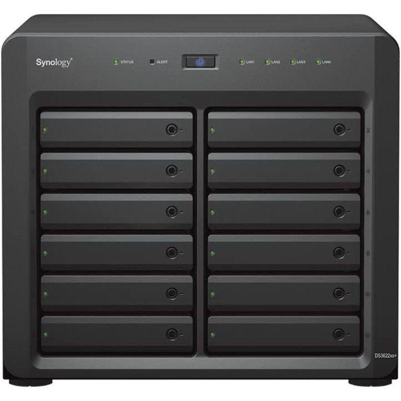 El Synology DS3622xs+ de 12 bahías es un potente NAS capaz de ajustarse a entornos de pequeñas y medianas empresas con cargas de trabajo intensivas y multiusuario. Su gran capacidad, escalabilidad y potencia de procesamiento la convierten en la solución ideal para el almacenamiento de máquinas virtuales y contenedores, el uso compartido de archivos ultrarrápido y como Network Video Recorder para grandes implementaciones de vigilancia. Incluye potente software de administración de almacenamiento, sincronización de archivos, vigilancia y copia de seguridad, y es adecuada para editar vídeos de alta calidad.