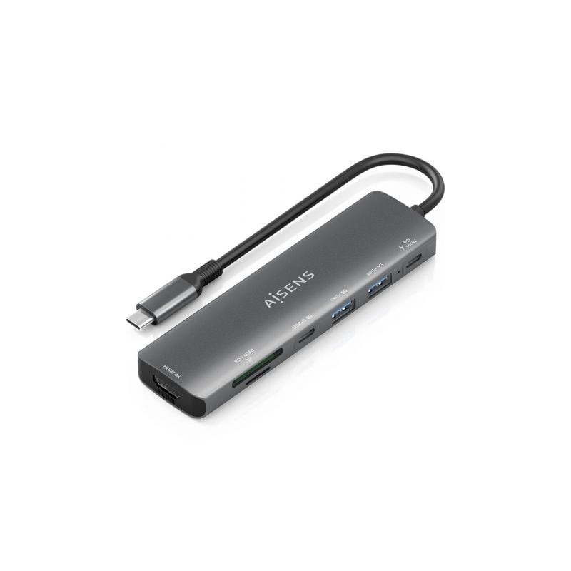 Docking USB Tipo-C Aisens ASUC-7P026-GR/ 1xHDMI 4K/ 2xUSB/ 1xUSB Tipo-C / 1xUSB Tipo-C PD/ 1xLector Tarjetas/ Gris