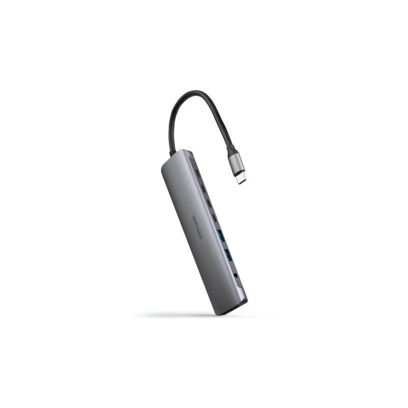 USB-C 8 en 1, USB-C 3.1 a 2 USB-A 3.0 + 3 USB-C 3.0 + USB-C PD + HDMI 4K a 60 Hz + conector de audio de 3,5 mm, aluminio, gris, 18 cm