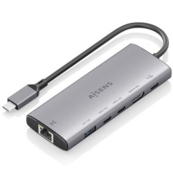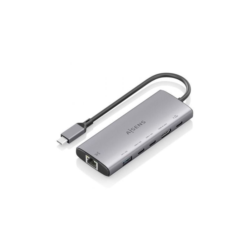 AISENS – USB-C DOCK 6 en 1, USB-C a 1xHDMI, 1xRJ45, 1xUSB-A 10G, 2xUSB-C 10G, 1xUSB-C PD, Gris, 20CM
