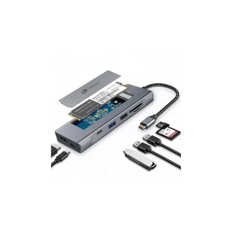 Docking USB Tipo-C Leotec LEDS07/ Ranura SSD M.2/ 2xUSB/ 1xUSB Tipo-C/ 1xHDMI 4K/ 1xLector Tarjetas SD y MicroSD/ 1xUSB Tipo-C P
