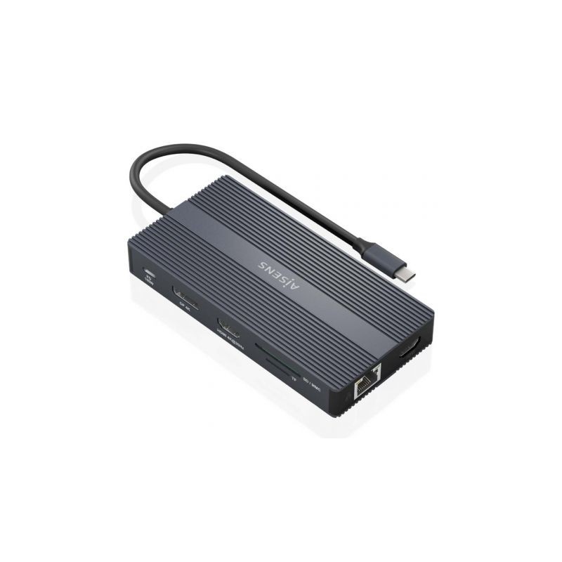 Docking USB Tipo-C Aisens ASUC-12P017-GR/ 2xHDMI 4K/ 4xUSB/ 1xUSB Tipo-C/ 1xRJ45/ 1xDisplayPort/ 1xLector Tarjetas/ 1xUSB Tipo-C