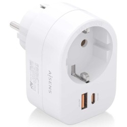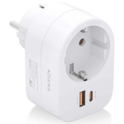 Enchufe Aisens ASPS-1A1C06-W/ 1 Toma de Corriente/ 1 USB Tipo-C PD/ 1 USB/ Blanco