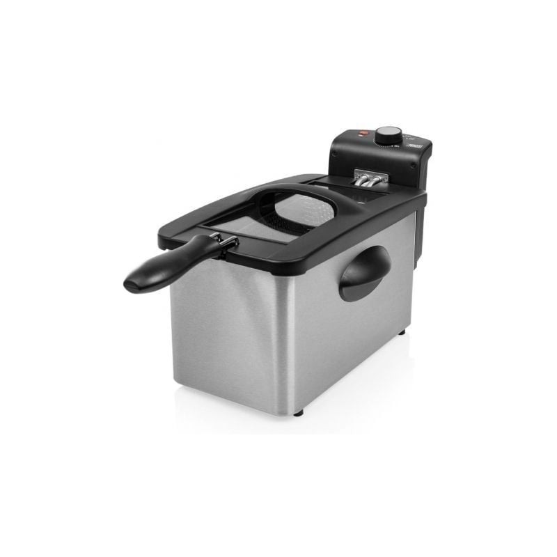 Gran freidora con capacidad de 3 L. Calienta rápidamente gracias a su potencia de 2000 V. Ahora siempre podrá comprobar sus patatas a través del cristal de la tapa.