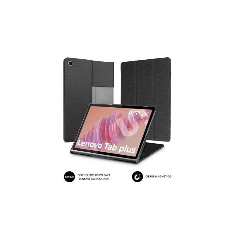 – Funda a medida para Lenovo Tab Plus 11,5″ 2025 (ZADX0066ES, Luna Grey); acceso libre a USB-C 45 W, jack 3,5 mm, ranura MicroSD y a los 8 altavoces JBL Dolby Atmos.